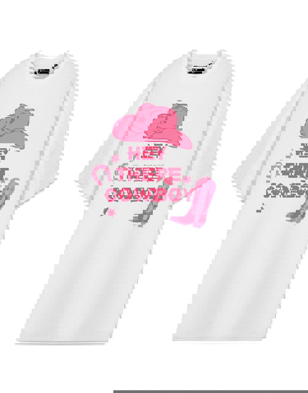 The classic white colour serves as a blank canvas for the bold graphic that screams cowboy cool