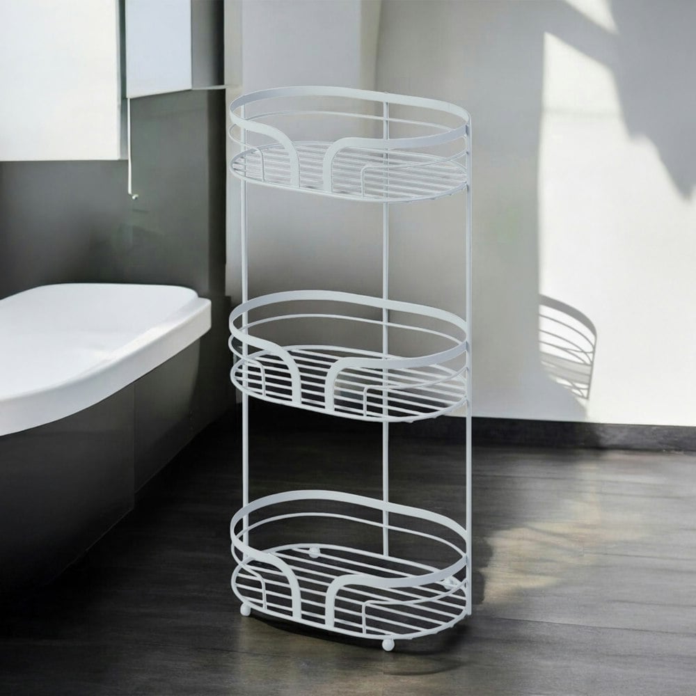 The freestanding Dante Floor Caddy solves your Bathroom storage problems with three baskets ready to house your toiletries: soaps, shampoos and sponges. Crafted from wire steel with powder coated matt white finish, this Floor Caddy is durable and long lasting!