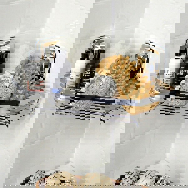 Introducing the PushLoc Corner Basket in Chrome – a practical and functional addition to Showerdrape's innovative wall-mounted suction bathroom accessories range.