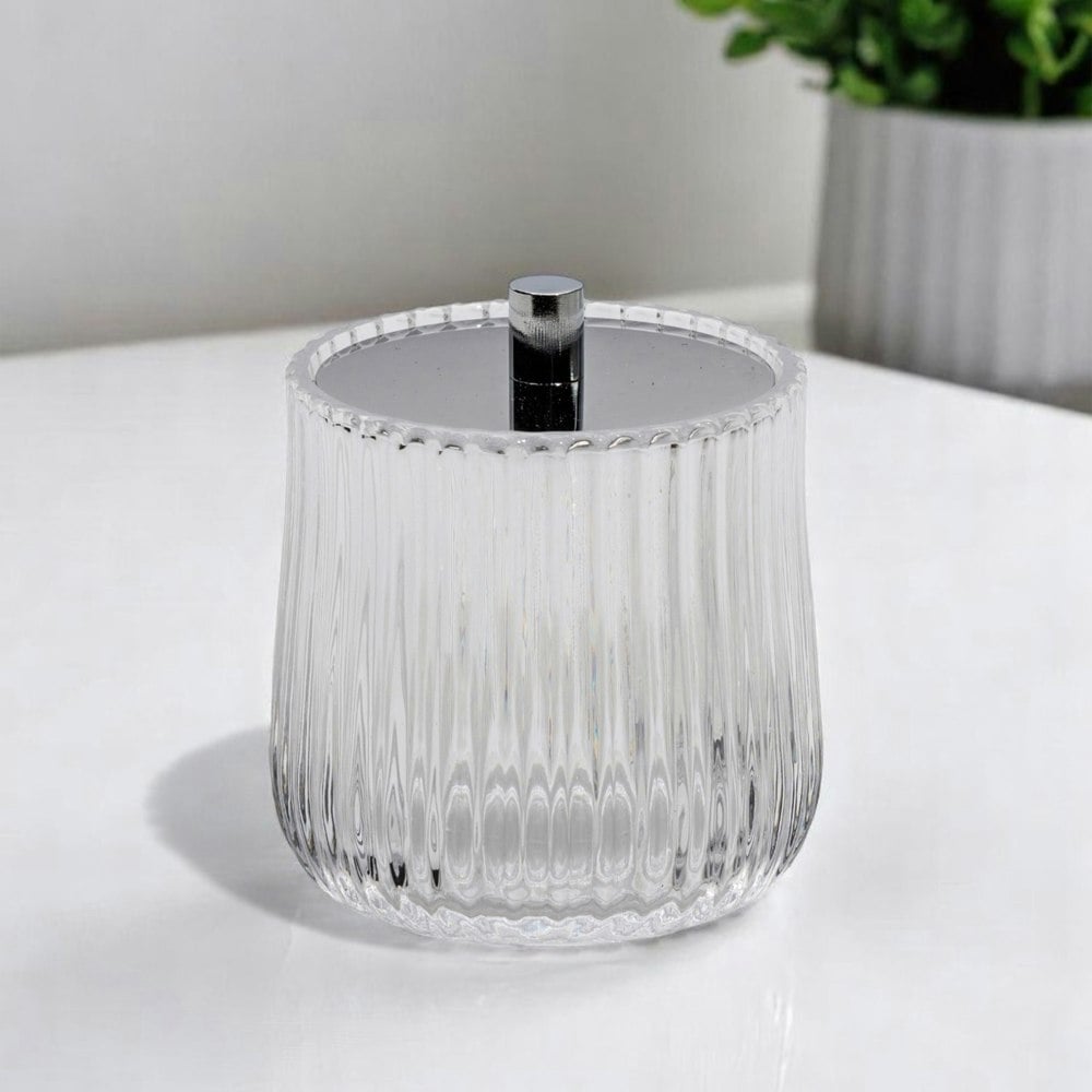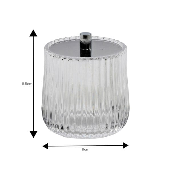 The Regent Storage Jar is finished with a chrome lid, and measures 10. 5cm x 8. 5cm.
