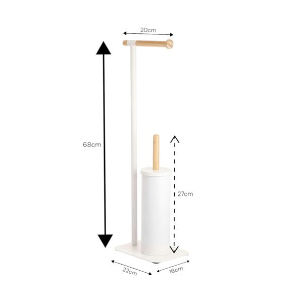 The Sonata White Toilet Roll Holder & Toilet Brush Combination is crafted with a harmonious blend of powder coated steel and Bamboo to create a durable, minimalist and eco-friendly neutral theme for your Bathroom. The Brush Holder includes a removable half plastic liner for hygiene purposes.