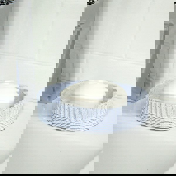 Keep your Bathroom surfaces clear and your essentials organised with the Tranquil Bathroom Accessory Set. Tranquil in the palest of blue, features a ribbed design, adding texture and visual interest to its overall appearance