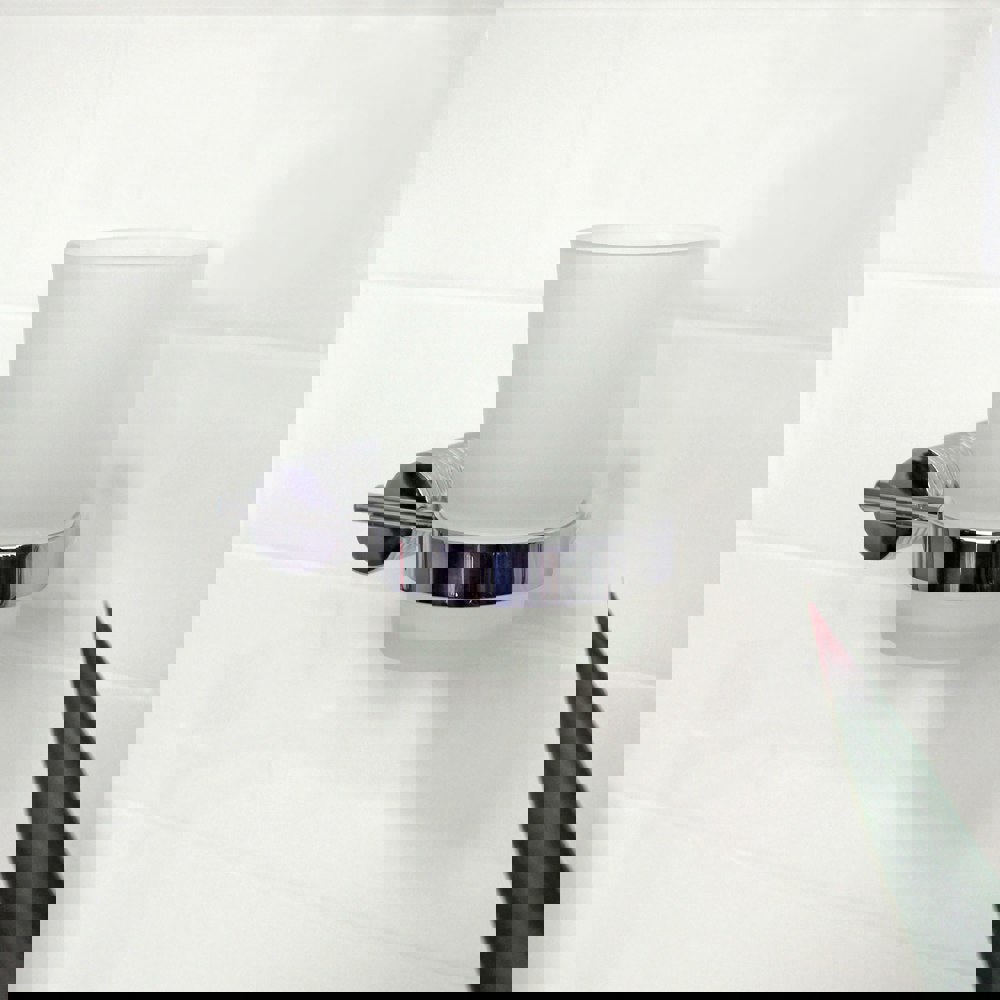 A stylish and functional fixture, the Vitality Toothbrush Holder offers practical storage for toiletries and helps keep the sink area tidy. Its contemporary design integrates seamlessly into any bathroom decor. This quality accessory is manufactured using high grade Stainless Steel and Frosted Glass, and is finished in a durable chrome plated finish.