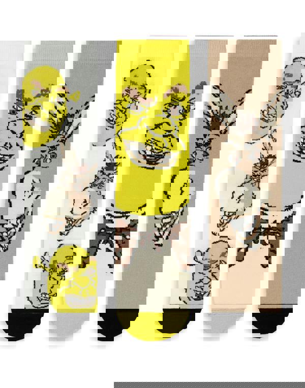 Introducing the Shrek Donkey Unisex Multicoloured Calf Socks Set of 3, designed for everyday wear and ideal for fans of the Shrek franchise