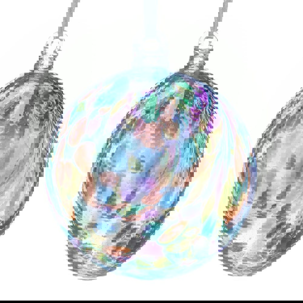 Sienna Glass 10cm Friendship Ball - Feather Design - Peacock