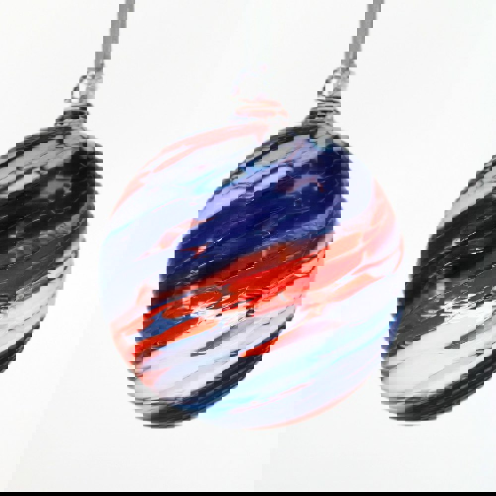 • Handmade 10cm glass Friendship Ball with red, white & blue swirls