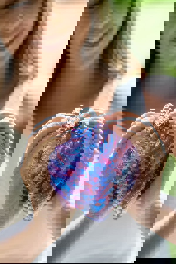 This Sienna Glass friendship heart is a stunning and meaningful gift for any special occasion. Hand blown by skilled craftsmen, each heart is unique and showcases beautiful blue and pink glass. Its vibrant colours make it a captivating piece when hung in a window, a bright spot indoors, or even in the garden.