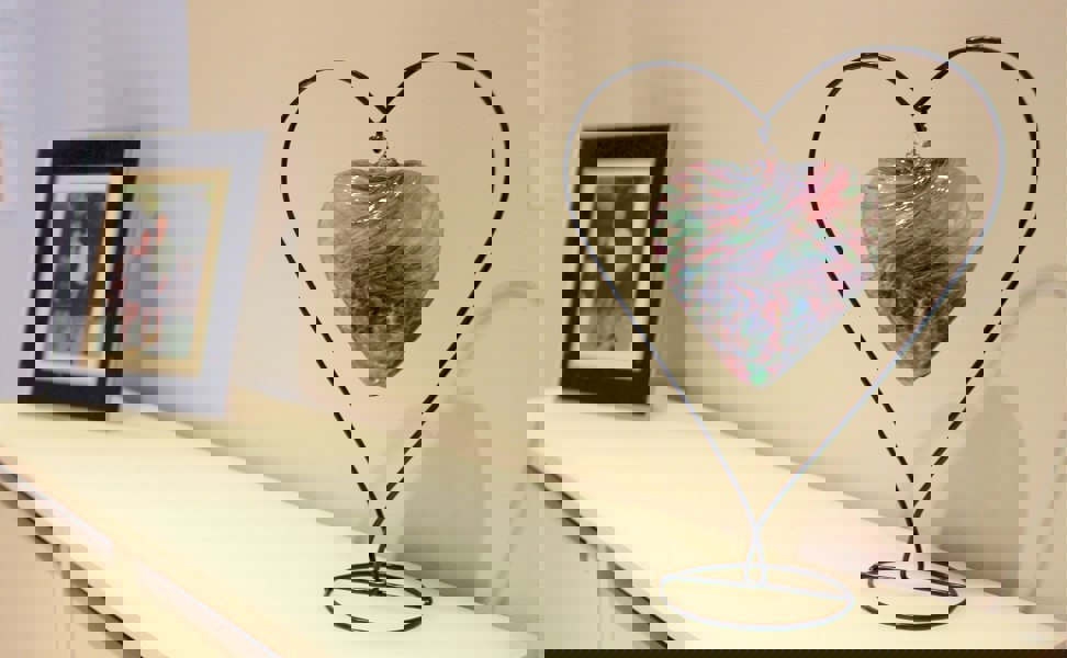 This Sienna Glass friendship heart is a stunning and meaningful gift for any special occasion. Hand blown by skilled craftsmen, each heart is unique and showcases beautiful multicoloured turquoise glass. Its vibrant colours make it a captivating piece when hung in a window, a bright spot indoors, or even in the garden.