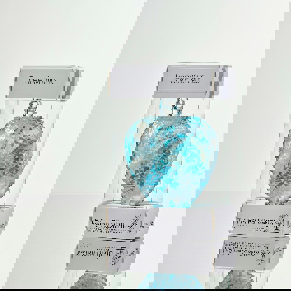 • Handmade 8cm pastel blue glass Friendship Heart with “Forever Yours” inscription