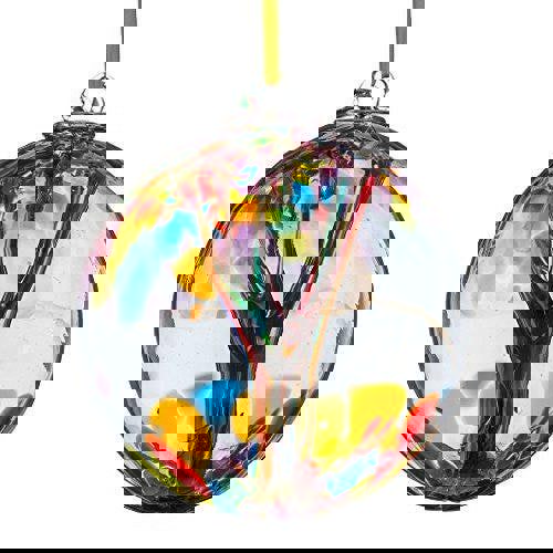 This Sienna Glass attraction orb is a stunning and meaningful gift for any special occasion. Hand blown by skilled craftsmen, each ball is unique and showcases beautiful coloured glass. Its vibrant colours make it a captivating piece when hung in a window, a bright spot indoors, or even in the garden.