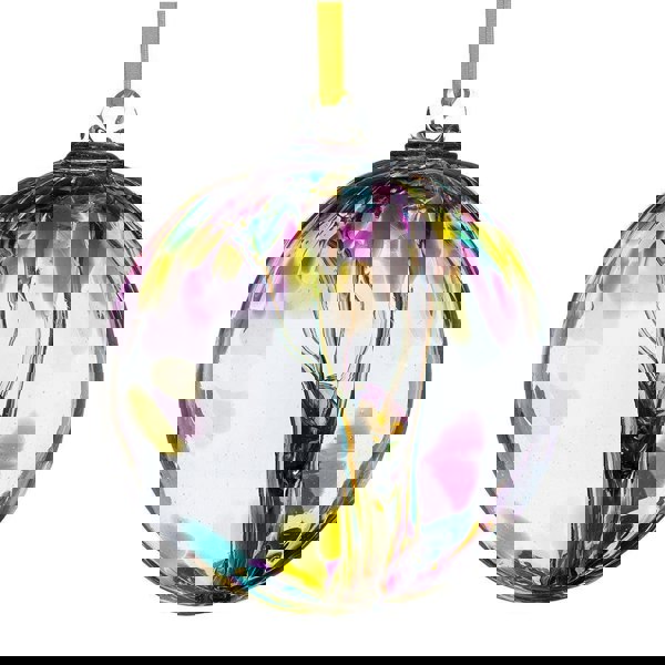 This Sienna Glass attraction orb is a stunning and meaningful gift for any special occasion. Hand blown by skilled craftsmen, each ball is unique and showcases beautiful coloured glass. Its vibrant colours make it a captivating piece when hung in a window, a bright spot indoors, or even in the garden.