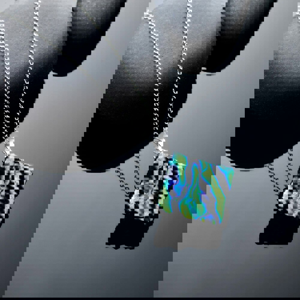 • Handmade dichroic glass necklace with vibrant rainbow colours