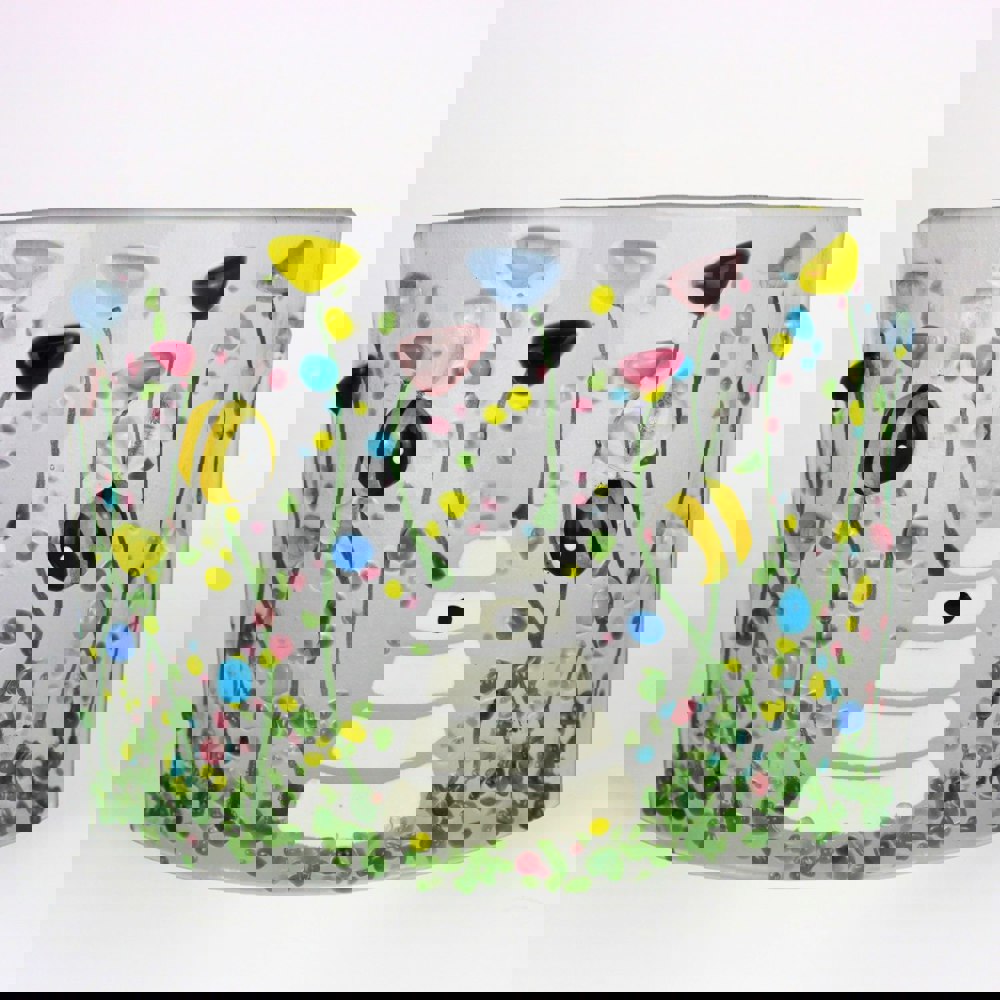 Bring the joy of summer indoors with our Handmade Fused Glass Curve – Bumble Bee in Summer Meadow. Featuring a happy little bee among colourful wildflowers, this kiln-fused glass piece is full of warmth, nature, and charm.