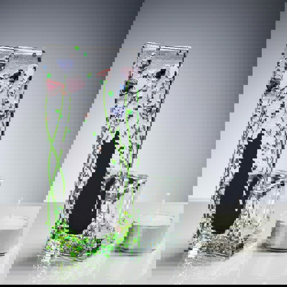 Add a touch of charm and tranquility to your home with our Handmade Fused Glass Tea Light Holder – Cat & Violet. This freestanding glass panel features a playful cat nestled among soft violet blooms, crafted with kiln-fused glass techniques.