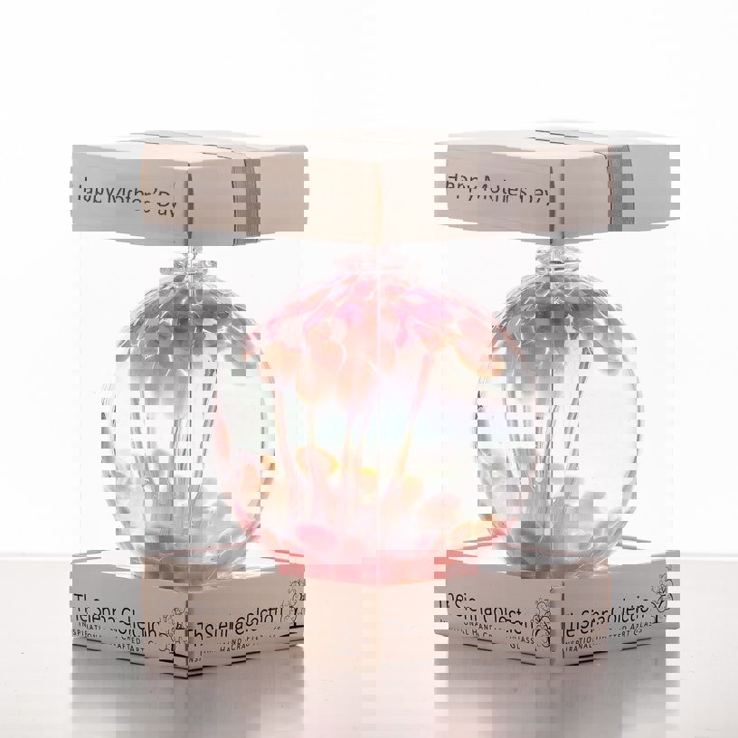 Looking for the perfect Mother's Day gift? Sienna Glass presents an exquisite pastel pink glass spirit or witches ball that is sure to be cherished. Hand-blown by skilled craftsmen, each ball is unique, adding to its charm and individuality.