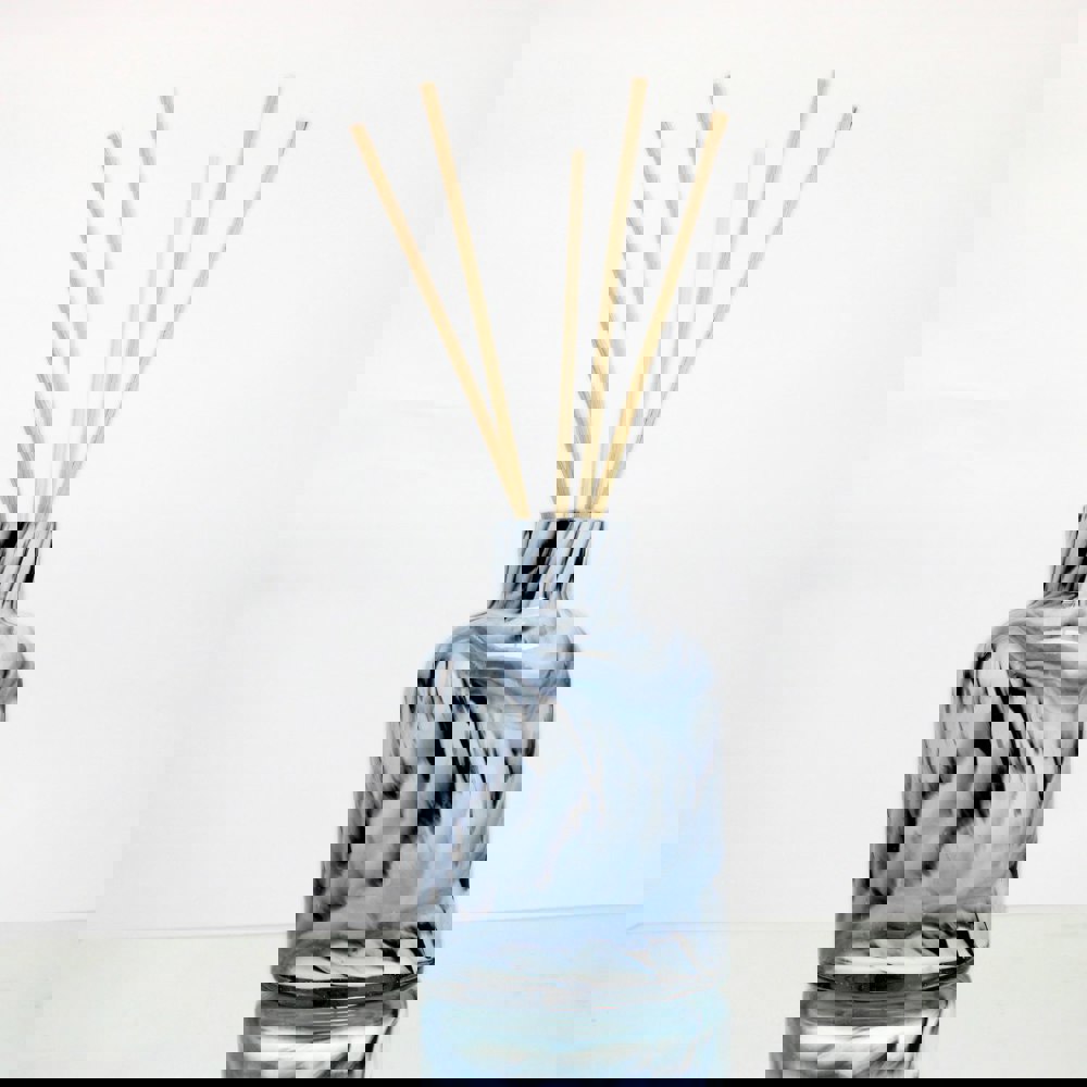 Moody and modern, Mini Forme – Smoke is a small reed diffuser with serious style. With smoky black, grey, and white marbled glass, this artisan-made piece brings quiet sophistication to desks, shelves, and small rooms. A beautiful balance of function and form, it’s ideal for monochrome interiors and design lovers alike.