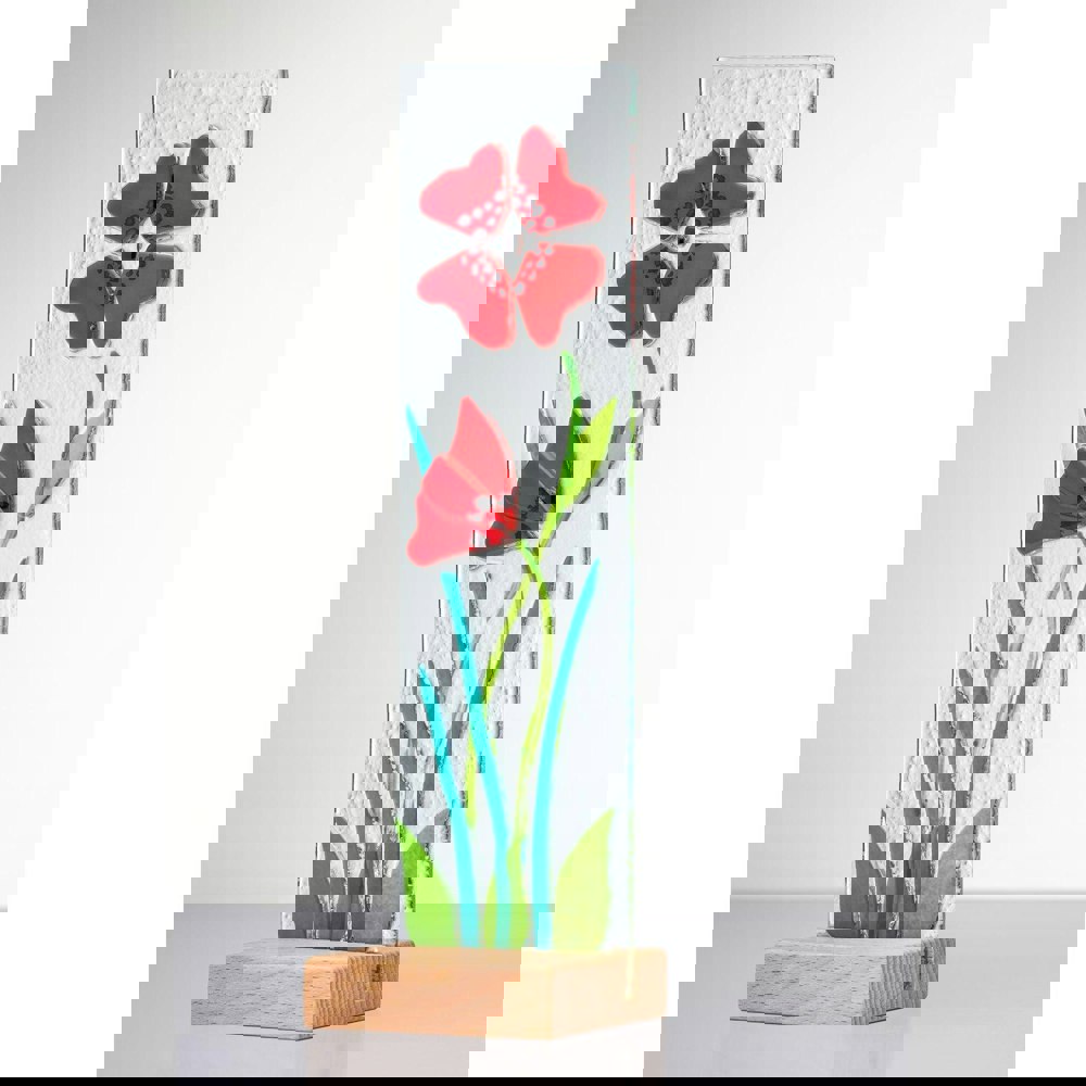 This fused glass flower plaque is a stunning and versatile keepsake or gift suitable for any occasion. The handcrafted nature of the fused glass flower plaque ensures its uniqueness, as each piece is individually crafted. The artisans' skill and artistic vision result in a one-of-a-kind design, making it a special and personalised gift or keepsake.