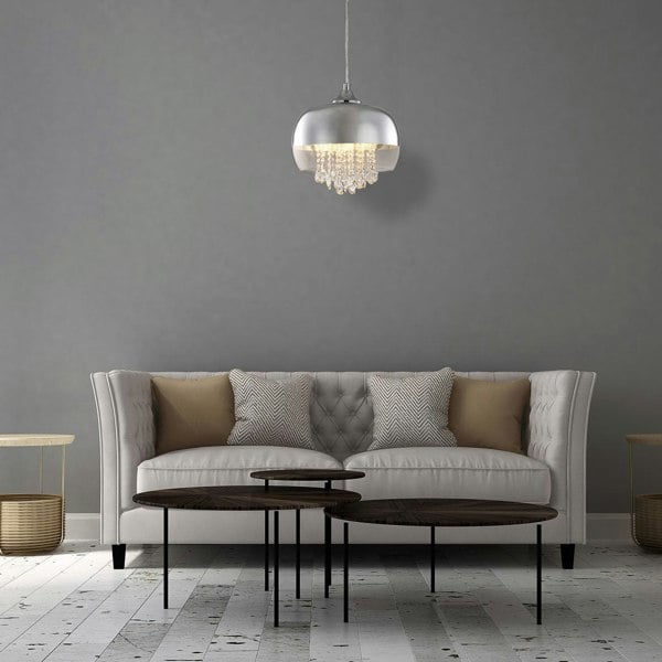 Luna Pendant 21CM 1XE14 Designer Light Crafted From A Chrome Fitting And Glass Shades With Suspended Crystals