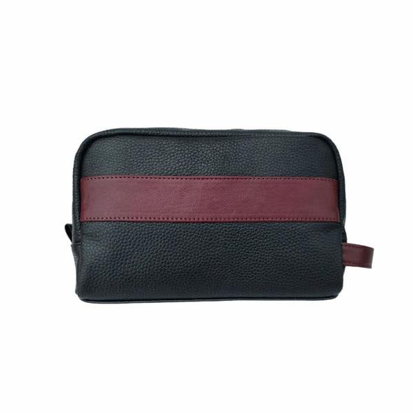Lightweight waterproof wash bag with a main waterproof compartment and zip pocket, made of leather and polyester, ideal for casual travel