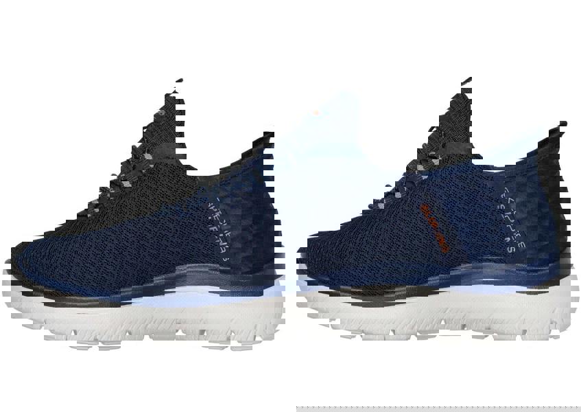 Step into easy-wearing comfort with Skechers Hands Free Slip-ins™: Summits - High Range. Along with our Exclusive Heel Pillow™ holds your foot securely in place, this vegan style features a unique pop-up Skechers Slip-ins™ molded heel panel, a mesh upper with fixed laces, and a cushioned Skechers Air-Cooled Memory Foam® insole.
