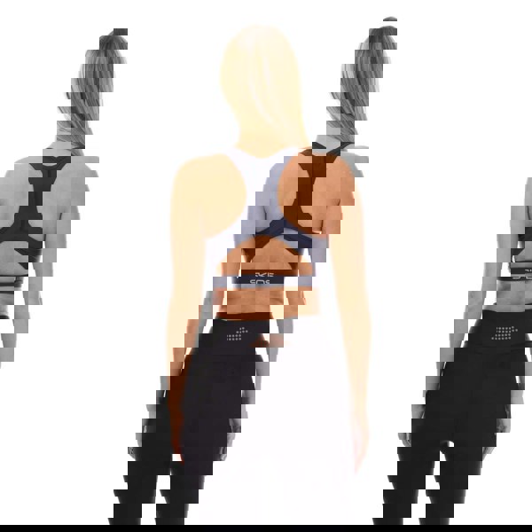 This active sports bra from the Series-3 range is made from a nylon and elastane blend. It comes in navy with a plain finish and logo detail. A scoop neckline and cross-back straps create an open-back look, finished with a cut-out back style.