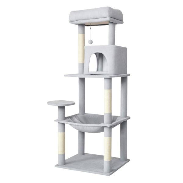 The centerpiece is our extra-large reinforced hammock with a secure four-point fixation which can support up to 20lb weight capacity. It's built for safety and comfort. Your cat will enjoy a richer activity setup with a spacious condo top plush platform hammock multiple sisal posts and a hanging ball toy—offering more playing choices.