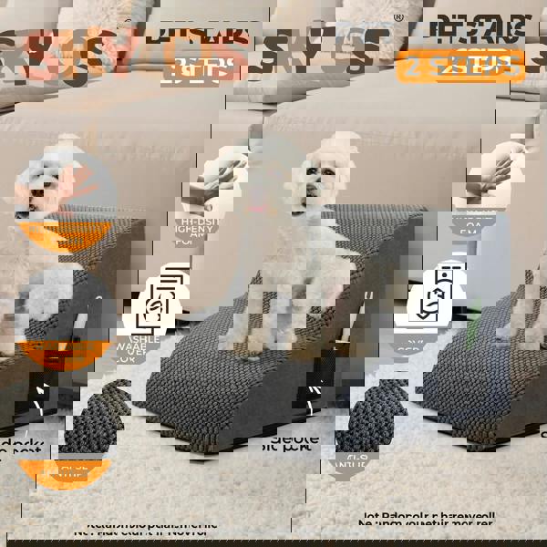 The non-slip bottom ensures stability preventing any wobbling or movement while the smooth zipper and removable washable cover make maintenance a breeze. With a convenient portable handle these pet steps are easy to move around making them perfect for small pets older dogs and injured animals. Skylos pet stairs serve not only as stairs but also as a compact pet ramp solution that fits well into any home.