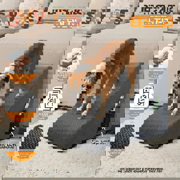 The non-slip bottom ensures stability preventing any wobbling or movement while the smooth zipper and removable washable cover make maintenance a breeze. With a convenient portable handle these pet steps are easy to move around making them perfect for small pets older dogs and injured animals. Skylos pet stairs serve not only as stairs but also as a compact pet ramp solution that fits well into any home.