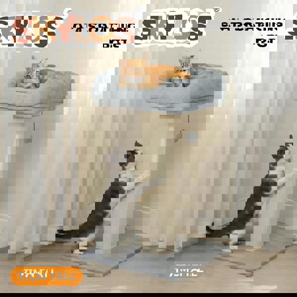 Give your cat the perfect play and rest haven with the cat tree. Crafted from eco-friendly E1-grade particle board wrapped in 100% natural sisal rope and covered with soft plush this cat tower is built for both durability and comfort. It features a sturdy base with an anti-tip kit for enhanced safety. Dual sisal posts offer excellent grip for scratching while the spacious perch provides a cozy resting spot. The removable plush cushion ensures easy cleaning. This cat tree combines functionality stability and style making it a superior choice for you.