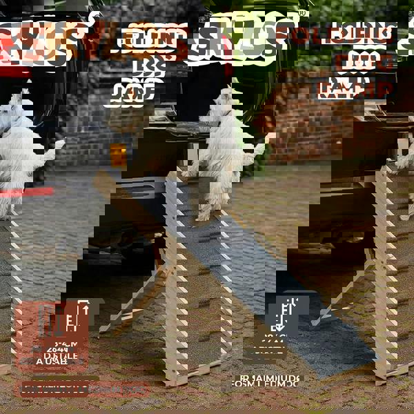 This premium pet ramp is designed to help small and medium-sized pets safely reach beds sofas or cars. Built with a sturdy wooden frame and anti-slip fabric surface it offers stable support up to 50lbs (22. 7kg). The ramp features 4 adjustable height levels (23/33/38/44cm) allowing easy customization for different surfaces. No assembly required — simply unfold and use. Lightweight and foldable with a side handle it’s easy to carry and store anywhere in your home or car.