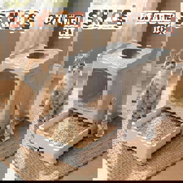 Skylos cat litter box keep your home clean and your cat happy with this . Featuring a convenient front entry and top-access design it offers easy cleaning and privacy for your cat. Made from durable high-quality materials this cat litter box enclosed is ideal for all cats and fits seamlessly into any home.
