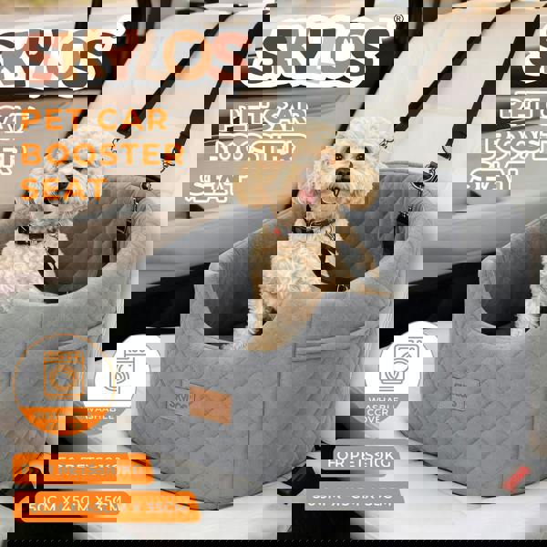 Skylos dog booster car seat ensures safe travel for pets up to 10kg. Equipped with safety harness and headrest straps it reduces in-car movement. Soft crystal velvet with thick sponge absorbs bumps for comfort. Removable cover supports machine wash keeping car clean. Non-slip base ensures stability easy to install on front or rear seats.