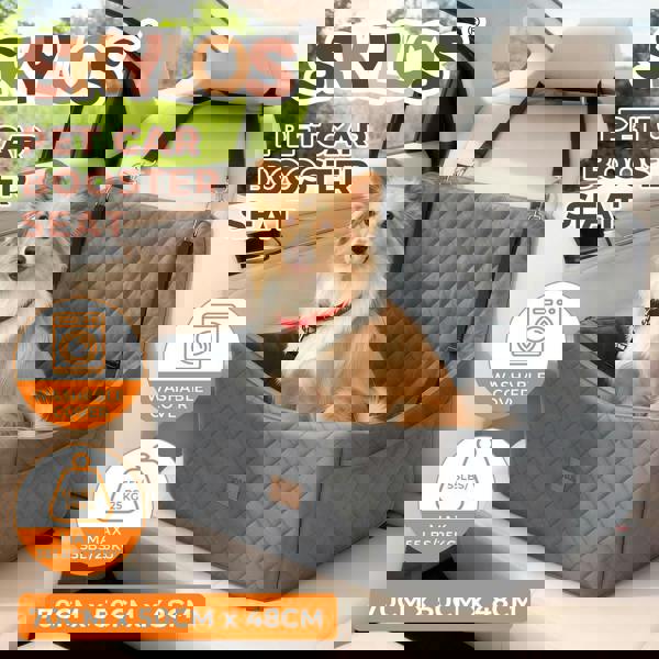 The Skylos dog booster car seat provides safe and comfortable travel for pets. Strong leash strap safety belt and anti-slip Oxford base keep it stable. And the adjustable leash straps prevent window jumps. The 9cm foam cushion and soft crystal velvet cover reduce anxiety and improve visibility. The 70cm x 50cm x48cm space suits large dogs up to 25kg or two small dogs. The removable cover makes cleaning easy. Allow 24–48 hours after unpacking for shape recovery.