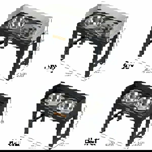 Made from durable ABS PP stainless steel the stand includes two 1100ml stainless steel bowls that are dishwasher-safe and easy to clean. Anti-slip feet and silent rubber edges improve stability and reduce noise while adjustable buttons ensure a secure fit. The sturdy H-frame folds down to 8cm for convenient storage.