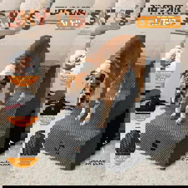 The non-slip bottom ensures stability preventing any wobbling or movement while the smooth zipper and removable washable cover make maintenance a breeze. With a convenient portable handle these pet steps are easy to move around making them perfect for small pets older dogs and injured animals. Skylos pet stairs serve not only as stairs but also as a compact pet ramp solution that fits well into any home.