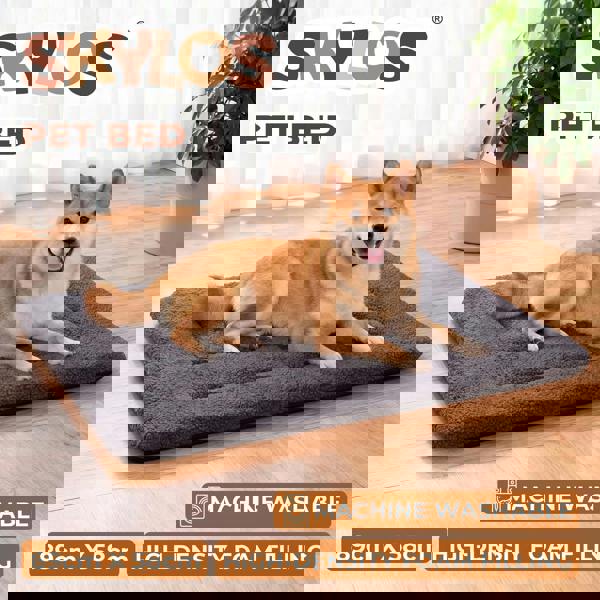 The SKYLOS large dog bed mattress provides a comfortable resting space for from medium to large sized dogs. The soft plush dog bed fabric combined with foam padding creates a supportive pet bed where dogs can stretch and relax after daily activity. This dog mattress works well as a dog crate mat or floor dog bed helping improve comfort compared with hard surfaces.