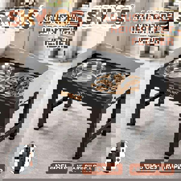 Upgrade your dog's mealtime with the Skylos Elevated Pet Feeder designed for comfort and hygiene. With six adjustable heights (8/22/24/26/28/30cm) this raised dog bowl adapts to different dog sizes. It is recommended to use the 10° ergonomic tilt (rear legs two levels higher than front) to help support healthier neck posture while the half-surround guard helps reduce spills and keep feeding areas tidy.