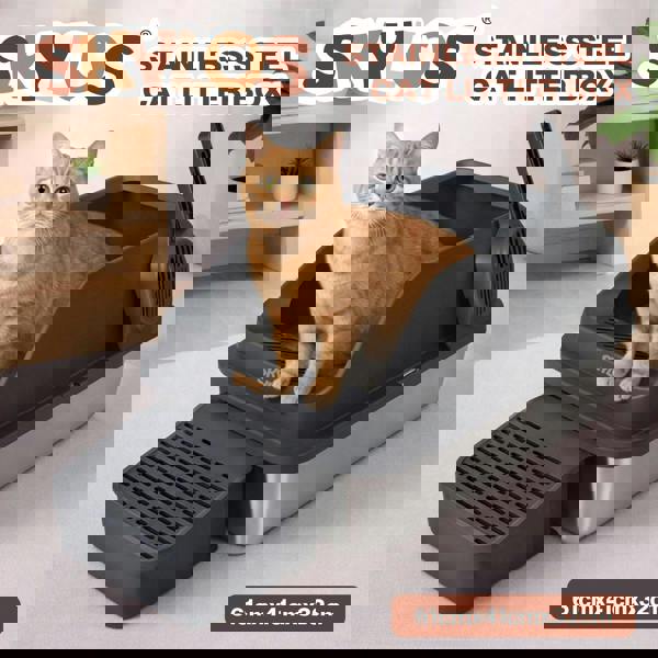 Upgrade your cat's comfort with the Skylos Stainless Steel Cat Litter Box built for durability hygiene and easy maintenance. With an extra-large 74. 4L capacity accommodating up to 52L of litter it is ideal for multi-cat households and larger breeds. Made from premium stainless steel and PP materials it resists scratches helps prevent odours and allows quick effortless cleaning.