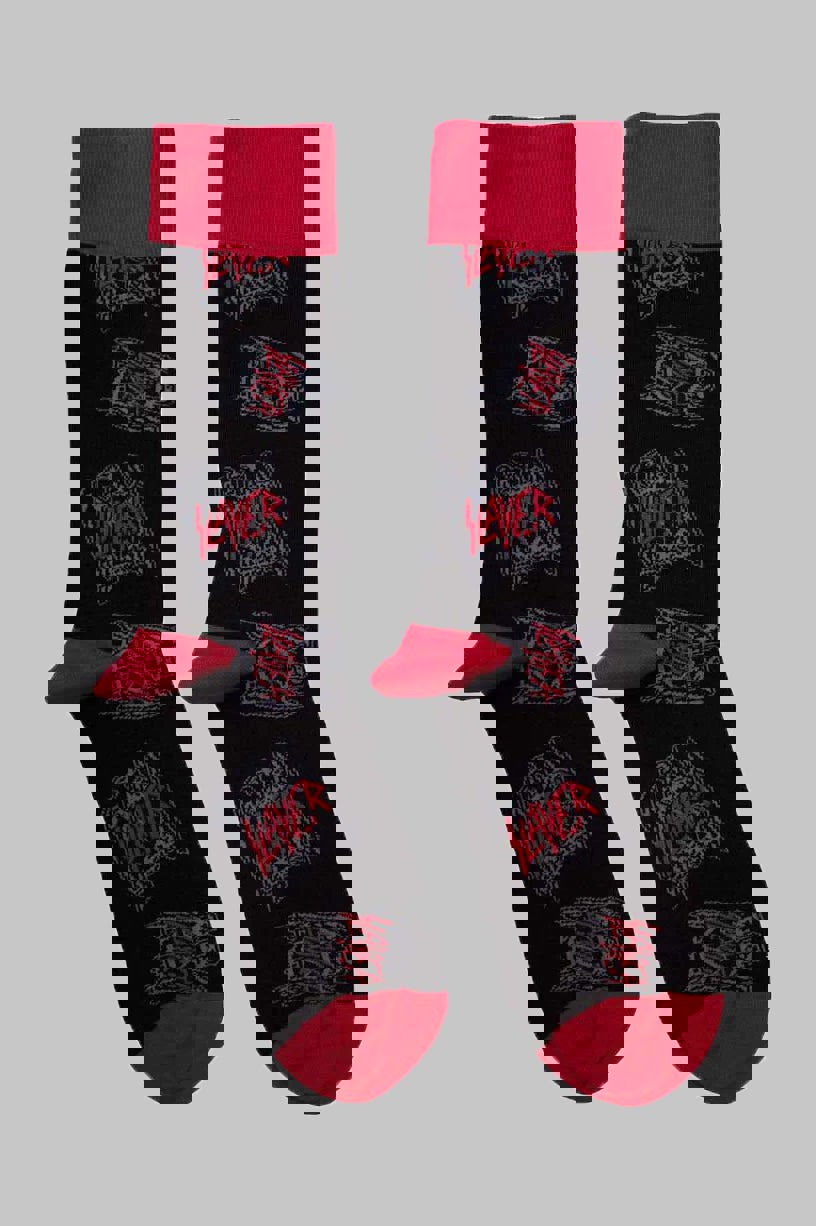 Official licensed Slayer Unisex Ankle Socks featuring the 'Eagle Crest Pattern' design motif. High quality Ankle Socks available in a black colourway. High quality 86% cotton, 12% polyamide, 2% elastane unisex ankle socks featuring an all-over pattern and cotton rich. These woven socks are guaranteed to stand out in the crowd.