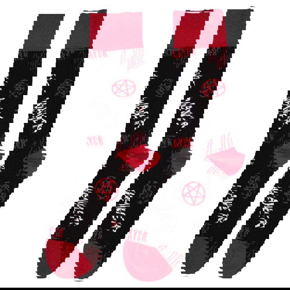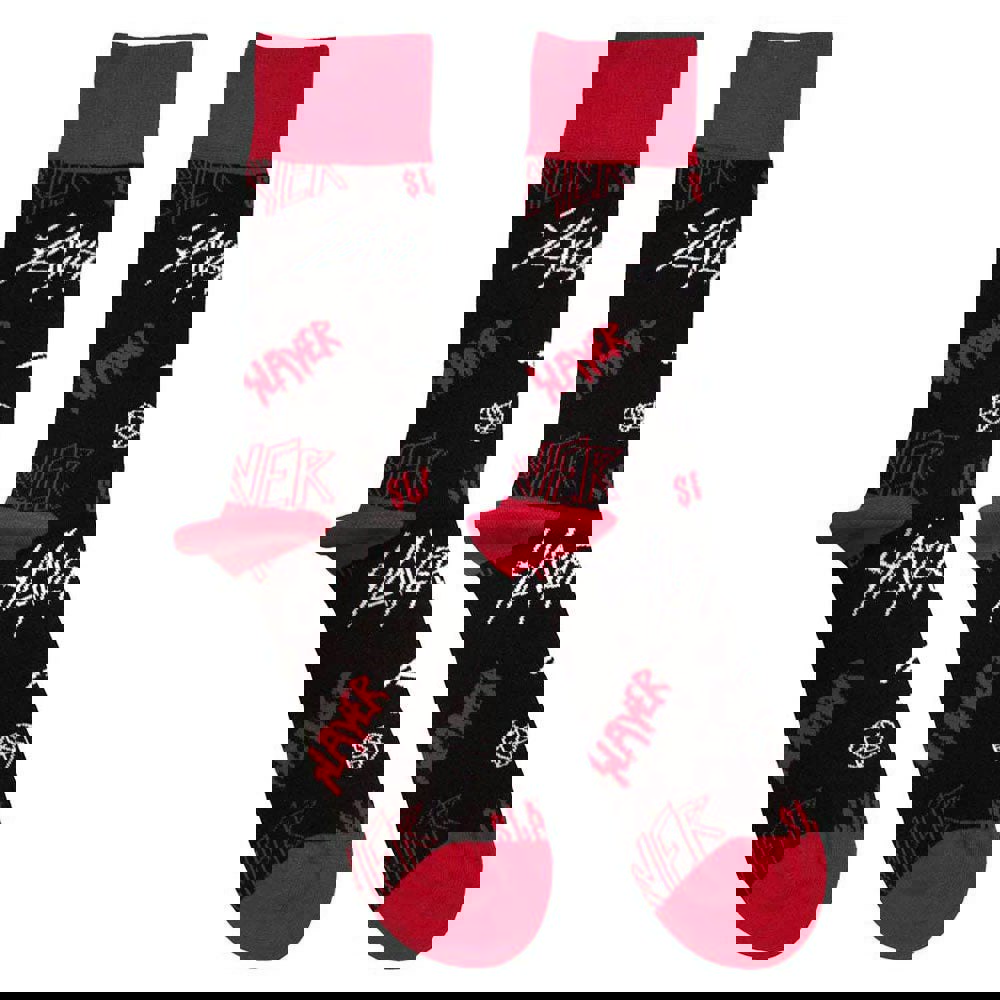Official licensed Slayer Unisex Ankle Socks featuring the 'Logos Pattern' design motif. High quality Ankle Socks available in a black colourway. High quality unisex ankle socks featuring an all-over pattern and cotton rich. These woven socks are guaranteed to stand out in the crowd. Approx. UK Size 7 - 11 EU 40 - 45 US Size 7. 5 - 11. 5