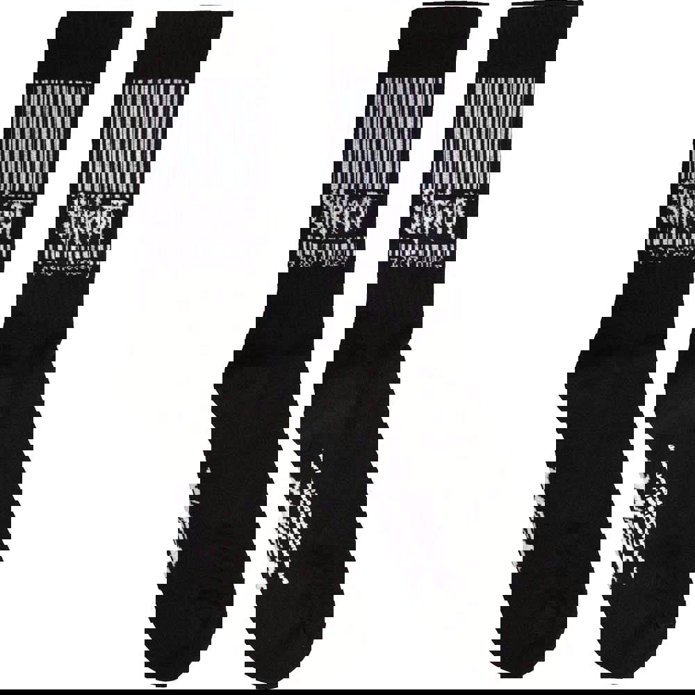 Official licensed Slipknot Unisex Terry Socks featuring the 'Barcode & Tribal S' design motif. High quality Terry Socks available in a black colourway. These premium quality, colourful, all-over pattern cotton rich woven socks are guaranteed to stand out in the crowd. They are a thicker quality cotton similar to sports quality terrycloth.