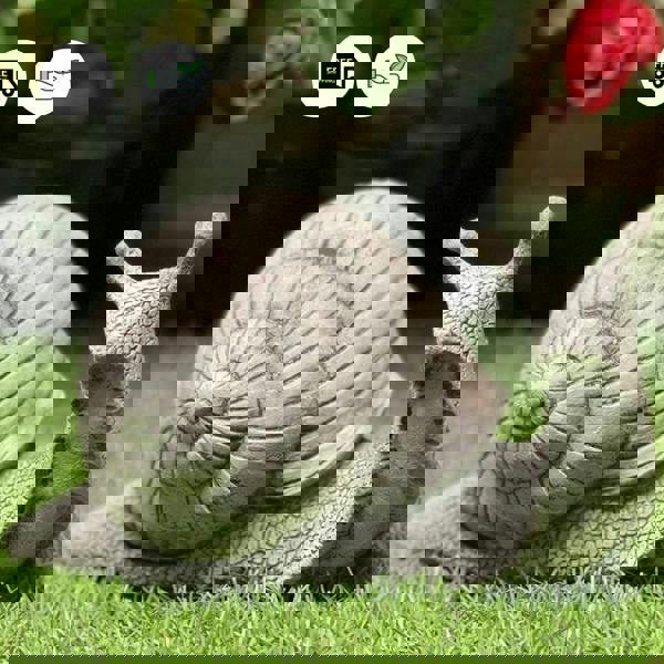 An incredibly detailed design of snail sculpture is reminder to slow down and enjoy the good life! This slippery spiral shell creature stone cast sculpt would make a perfect garden decoration sliding through your flowerbeds. The shell is hand dyed in a contrasting red/brown. Due to the hand dying process there can be variation in the colour.