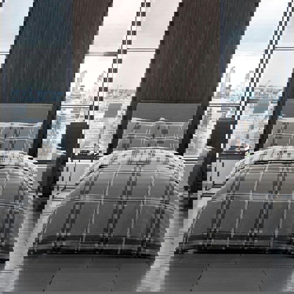 Smart Living Bardsley Check Duvet Cover and Pillowcase Set - Grey