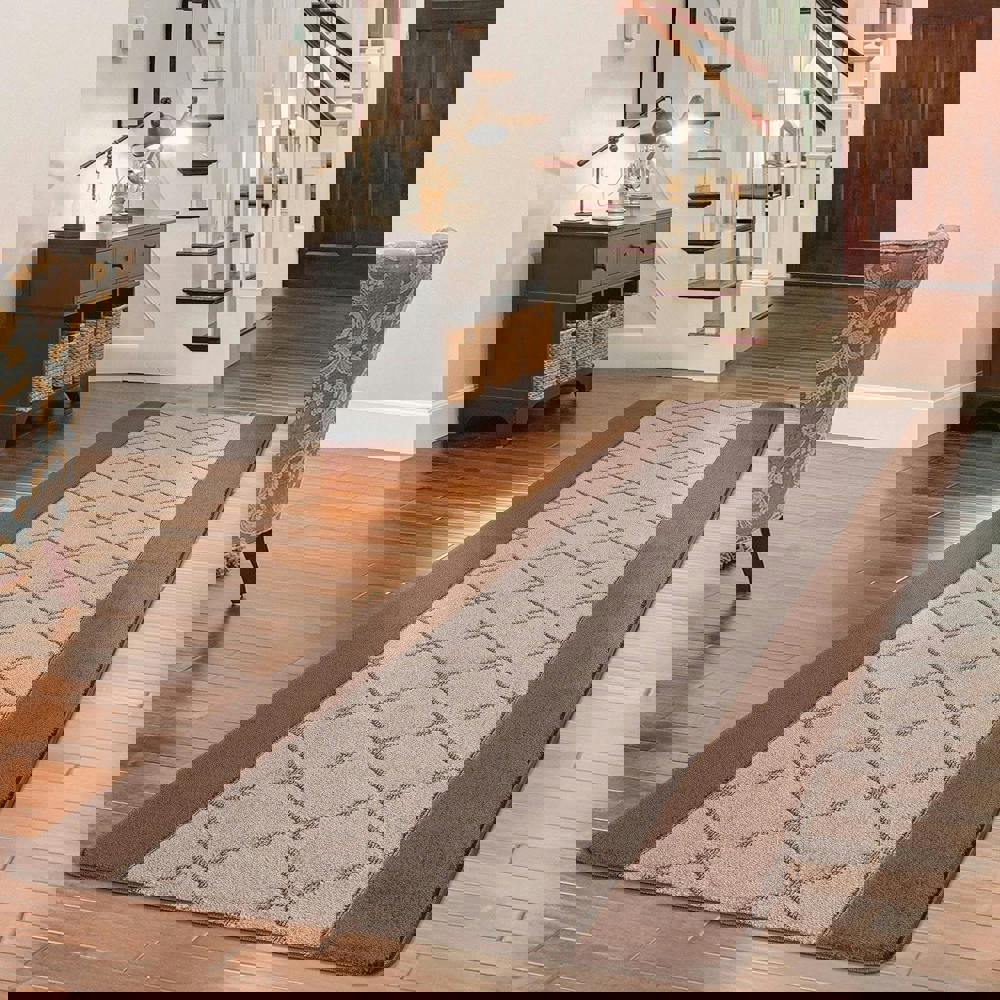 Designed for busy areas of the home, the Smart Living Carmela Gel Mat is a practical runner-style mat for hallways, kitchens and door entrances. Its modern striped look in brown and beige brings a subtle touch of pattern while helping create a hardworking barrier against everyday dust in high-traffic spaces.