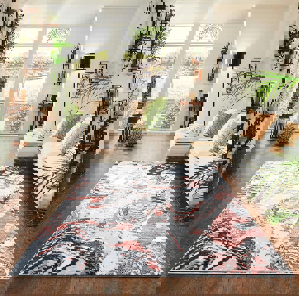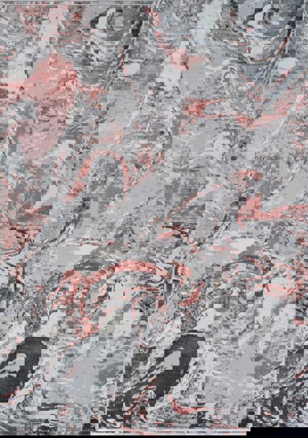 Its abstract grunge and marbling patterns, paired with two rich metallic tones, create visual interest, while the soft pile ensures a luxurious feel underfoot.