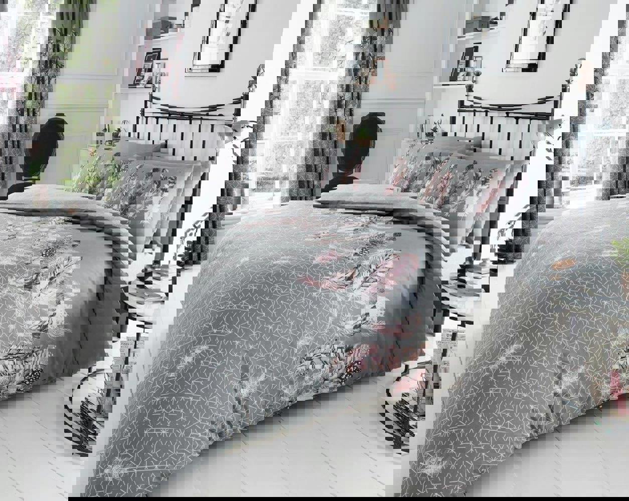 Smart Living Feathers Duvet Cover and Pillowcase Set - Grey