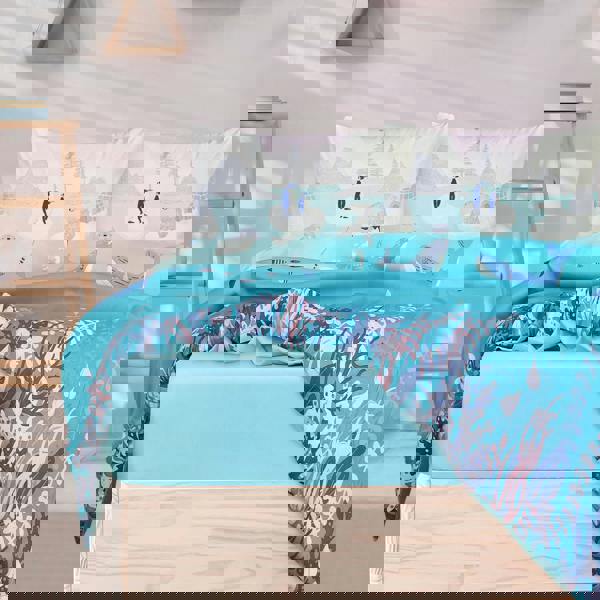 Alternatively, the Arctic Animals Reversible Duvet Cover Set brings the magic of winter to life with adorable penguins, polar bears, and whales in a serene Arctic landscape.