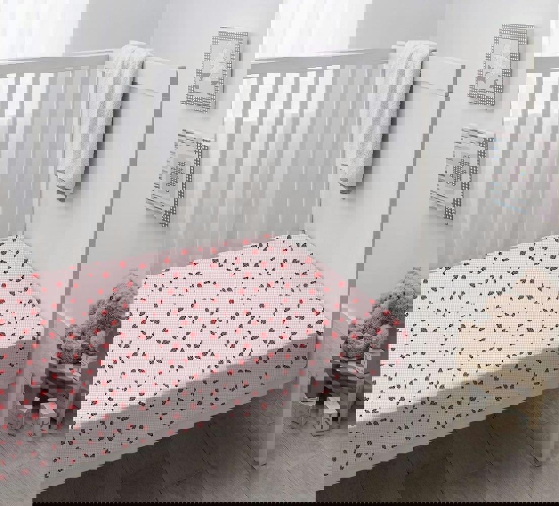 Bring a playful finish to the nursery with the Smart Living Ladybird-Themed Cotton Fitted Crib Sheet, designed to create a cosy sleep space for your baby. Made from ultra-soft, breathable 100% cotton, it offers a gentle surface that’s suited to sensitive skin and allergy-prone infants. The charming ladybird print is dyed using non-toxic colours, adding a cheerful touch while supporting visual interest in your baby’s surroundings.