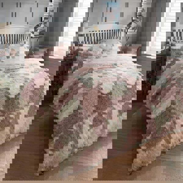 Elevate your bedroom with the PRINTED GEO SHAGGY Fleece Duvet Cover Set, blending modern style with luxurious comfort.