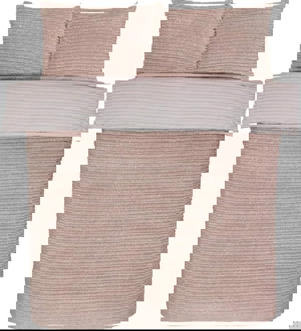 Elevate your bedroom with the Reversible Sparkle Ribbed Fleece Duvet Cover Set, blending modern style with luxurious comfort.